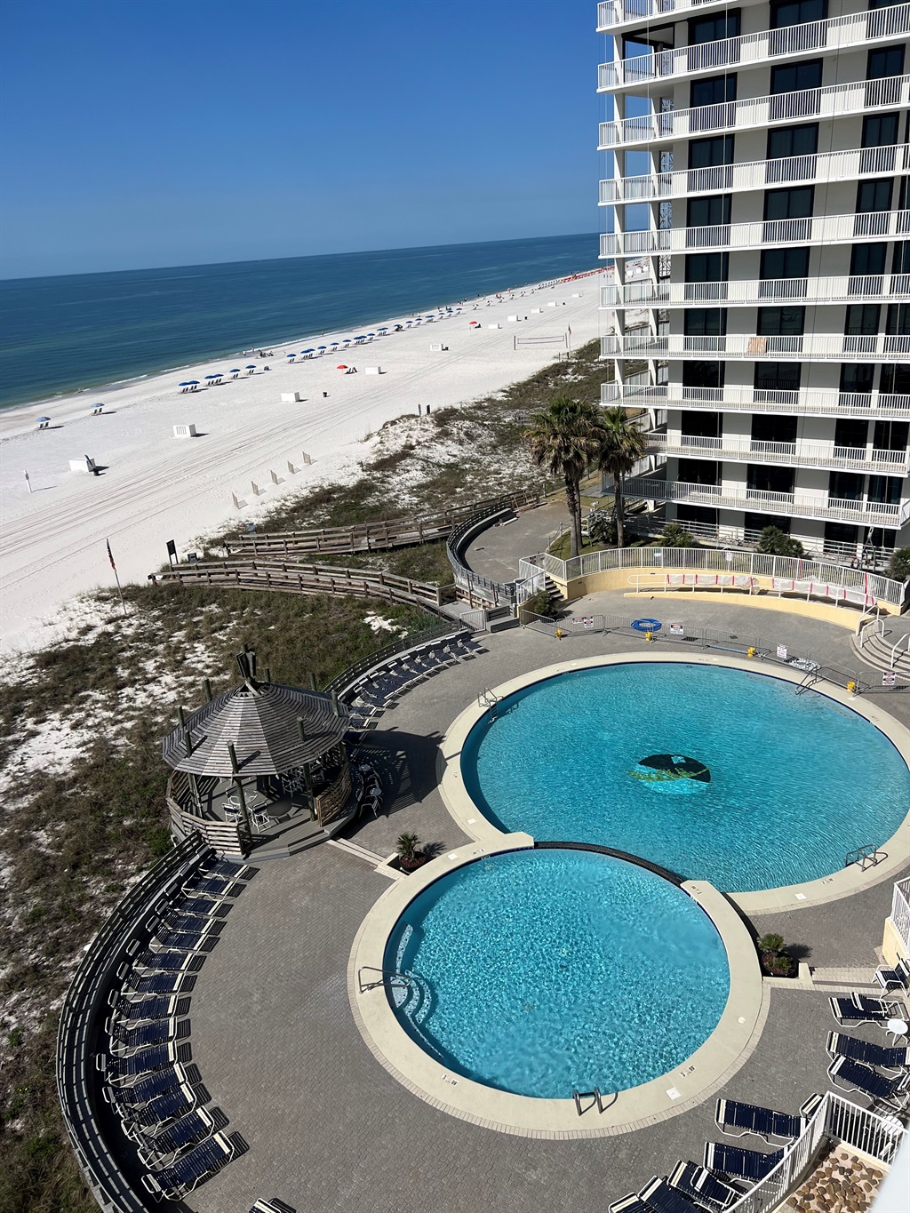 Summer House currently has a sandbar about 50’ offshore. This creates a fantastic break for kids to play on the beach and it also has the effect of drawing the smaller fish to the bar. Where there is dinner, there are patrons and those happen to be dolphins! From 1104A, you can clearly see the dolphins and rays doing what dolphins and rays do….and is also a great place to catch what the Blue Angels do too!